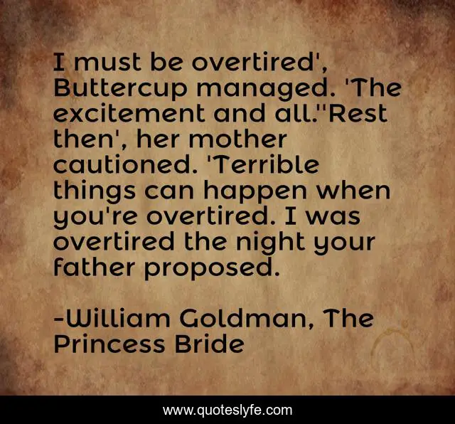 "William Goldman, The Princess Bride Quotes." Quoteslyfe.com, 2025. Fri. 05 Dec. 2025. <https://www.quoteslyfe.com/quote/I-must-be-overtired-Buttercup-managed-The-215798>.