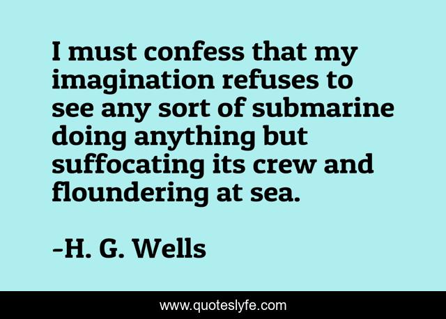 This page presents the quote "I must confess that my imagination refuses to see any sort of submarine doing anything but suffocating its crew and floundering at sea.". Author of this quote is H. G. Wells. This quote is about see, sea,.