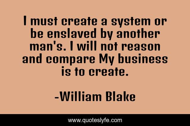 I must create a system or be enslaved by another man's. I will not reason and compare My business is to create.