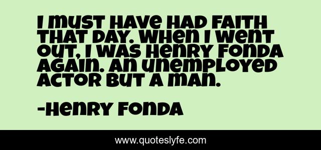 This page presents the quote "I must have had faith that day. When I went out, I was Henry Fonda again. An unemployed actor but a man.". Author of this quote is Henry Fonda. This quote is about day, actor, man,.