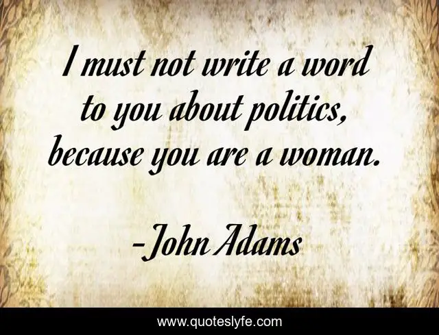 This page presents the quote "I must not write a word to you about politics, because you are a woman.". Author of this quote is John Adams. This quote is about woman, word,.