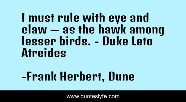 I must rule with eye and claw — as the hawk among lesser birds. - Duke Leto Atreides