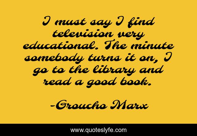 This page presents the quote "I must say I find television very educational. The minute somebody turns it on, I go to the library and read a good book.". Author of this quote is Groucho Marx. This quote is about television, book, library,.