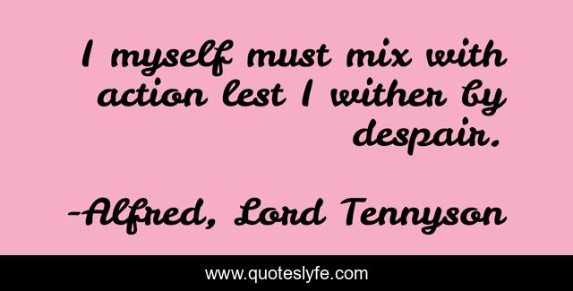 This page presents the quote "I myself must mix with action lest I wither by despair.". Author of this quote is Alfred, Lord Tennyson. This quote is about going, getting,.