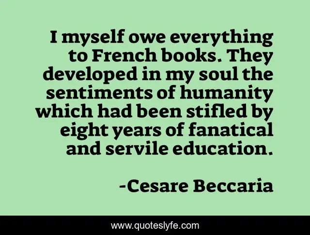 This page presents the quote "I myself owe everything to French books. They developed in my soul the sentiments of humanity which had been stifled by eight years of fanatical and servile education.". Author of this quote is Cesare Beccaria. This quote is about myself, soul, humanity,.