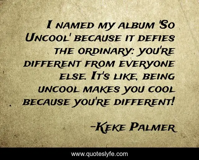 This page presents the quote "I named my album 'So Uncool' because it defies the ordinary: you're different from everyone else. It's like, being uncool makes you cool because you're different!". Author of this quote is Keke Palmer. This quote is about different, everyone,.