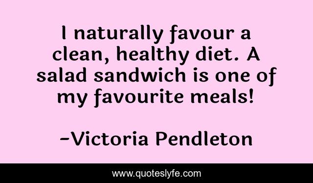 This page presents the quote "I naturally favour a clean, healthy diet. A salad sandwich is one of my favourite meals!". Author of this quote is Victoria Pendleton. This quote is about healthy, sandwich, clean,.