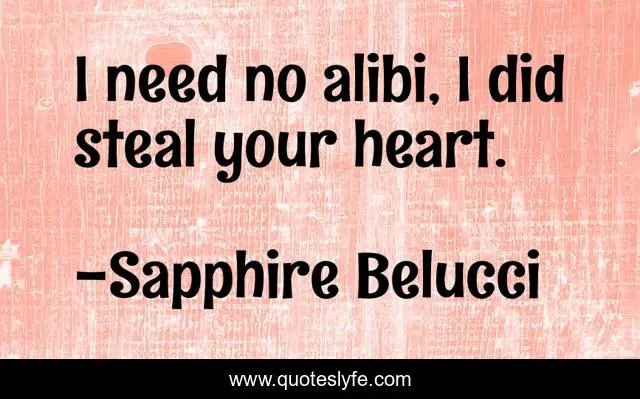 "Sapphire Belucci Quotes." Quoteslyfe.com, 2025. Sat. 06 Dec. 2025. <https://www.quoteslyfe.com/quote/I-need-no-alibi-I-did-steal-97785>.