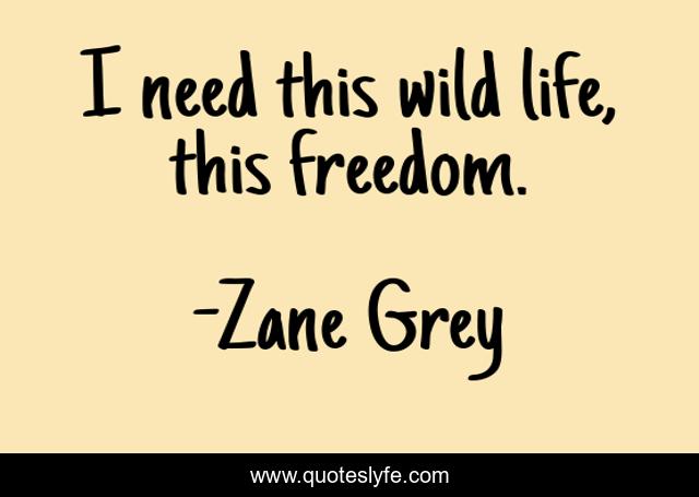 This page presents the quote "I need this wild life, this freedom.". Author of this quote is Zane Grey. .