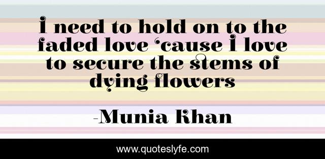This page presents the quote "I need to hold on to the faded love ‘cause I love to secure the stems of dying flowers". Author of this quote is Munia Khan. This quote is about spiritual, lovers, love, secure, dying, secured, stems, dried-flower, soul,.