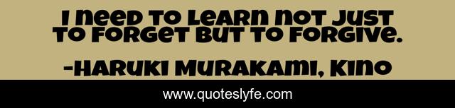 This page presents the quote "I need to learn not just to forget but to forgive.". Author of this quote is Haruki Murakami, Kino. .