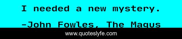 "John Fowles, The Magus Quotes." Quoteslyfe.com, 2025. Mon. 08 Dec. 2025. <https://www.quoteslyfe.com/quote/I-needed-a-new-mystery-146010>.