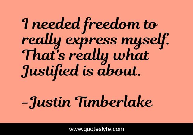 This page presents the quote "I needed freedom to really express myself. That's really what Justified is about.". Author of this quote is Justin Timberlake. This quote is about myself, express, justified,.