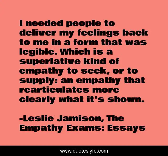 "Leslie Jamison, The Empathy Exams: Essays Quotes." Quoteslyfe.com, 2025. Sat. 06 Dec. 2025. <https://www.quoteslyfe.com/quote/I-needed-people-to-deliver-my-feelings-219417>.