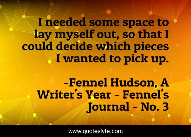 "Fennel Hudson, A Writer's Year - Fennel's Journal - No. 3 Quotes." Quoteslyfe.com, 2025. Fri. 05 Dec. 2025. <https://www.quoteslyfe.com/quote/I-needed-some-space-to-lay-myself-114020>.