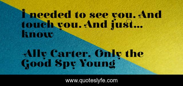 "Ally Carter, Only the Good Spy Young Quotes." Quoteslyfe.com, 2025. Sat. 06 Dec. 2025. <https://www.quoteslyfe.com/quote/I-needed-to-see-you-And-touch-188701>.
