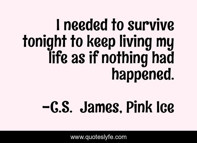 This page presents the quote "I needed to survive tonight to keep living my life as if nothing had happened.". Author of this quote is C.S. James, Pink Ice. .