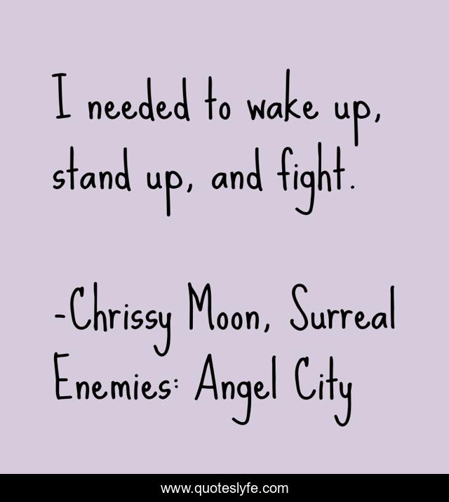 This page presents the quote "I needed to wake up, stand up, and fight.". Author of this quote is Chrissy Moon, Surreal Enemies: Angel City. This quote is about fight-back, inspirational-attitude,.