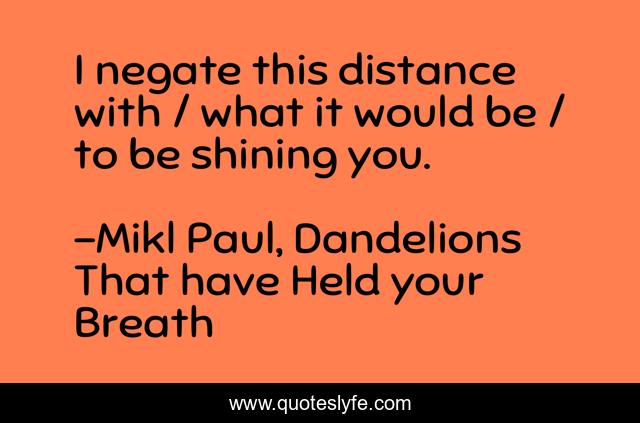 "Mikl Paul, Dandelions That have Held your Breath Quotes." Quoteslyfe.com, 2025. Fri. 05 Dec. 2025. <https://www.quoteslyfe.com/quote/I-negate-this-distance-with-what-it-182385>.