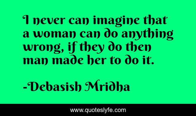 "Debasish Mridha Quotes." Quoteslyfe.com, 2025. Sun. 07 Dec. 2025. <https://www.quoteslyfe.com/quote/I-never-can-imagine-that-a-woman-127757>.