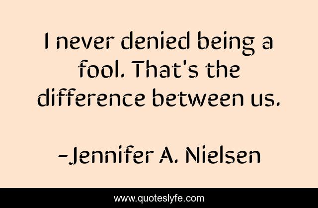 This page presents the quote "I never denied being a fool. That's the difference between us.". Author of this quote is Jennifer A. Nielsen. This quote is about sage, the-false-prince,.