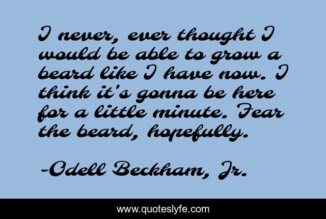 This page presents the quote "I never, ever thought I would be able to grow a beard like I have now. I think it's gonna be here for a little minute. Fear the beard, hopefully.". Author of this quote is Odell Beckham, Jr.. This quote is about thought, grow, think,.