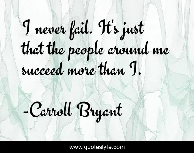 This page presents the quote "I never fail. It's just that the people around me succeed more than I.". Author of this quote is Carroll Bryant. This quote is about failure, humor, success,.