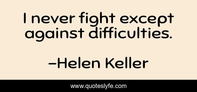 "Helen Keller Quotes." Quoteslyfe.com, 2025. Sat. 06 Dec. 2025. <https://www.quoteslyfe.com/quote/I-never-fight-except-against-difficulties-267940>.