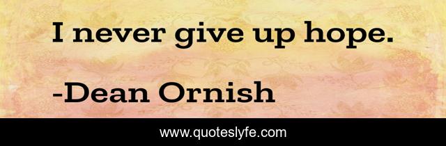 This page presents the quote "I never give up hope.". Author of this quote is Dean Ornish. This quote is about never give up, up,.