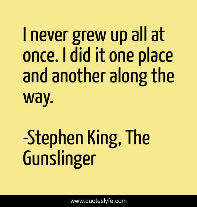 This page presents the quote "I never grew up all at once. I did it one place and another along the way.". Author of this quote is Stephen King, The Gunslinger. .