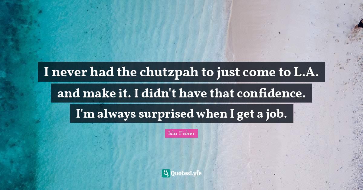 This page presents the quote "I never had the chutzpah to just come to L.A. and make it. I didn't have that confidence. I'm always surprised when I get a job.". Author of this quote is Isla Fisher. This quote is about confidence, jobs,.