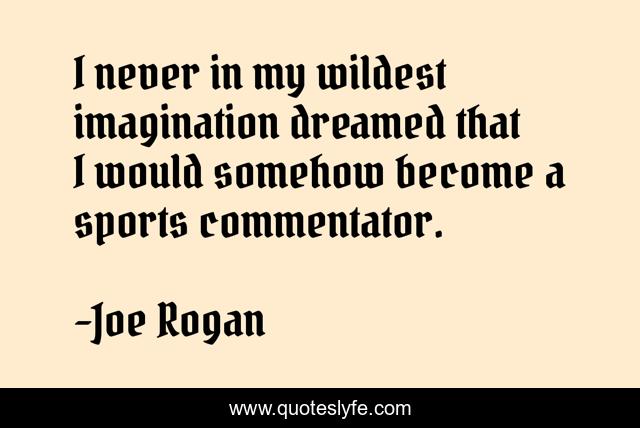 This page presents the quote "I never in my wildest imagination dreamed that I would somehow become a sports commentator.". Author of this quote is Joe Rogan. This quote is about imagination, become,.