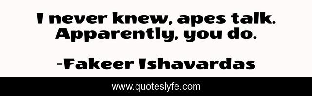 "Fakeer Ishavardas Quotes." Quoteslyfe.com, 2025. Mon. 08 Dec. 2025. <https://www.quoteslyfe.com/quote/I-never-knew-apes-talk-Apparently-you-251285>.