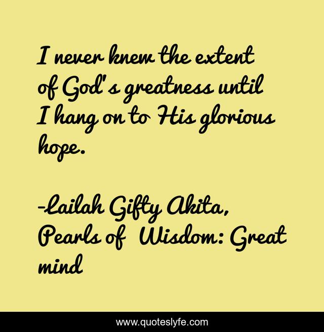 "Lailah Gifty Akita, Pearls of Wisdom: Great mind Quotes." Quoteslyfe.com, 2025. Sun. 07 Dec. 2025. <https://www.quoteslyfe.com/quote/I-never-knew-the-extent-of-God-62648>.