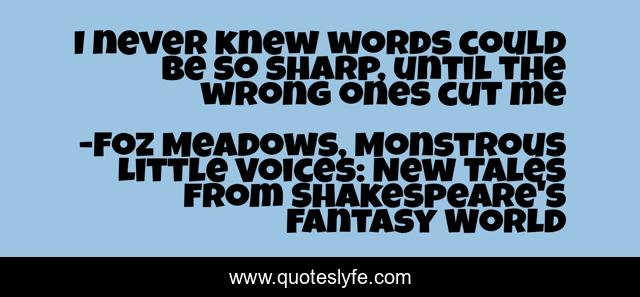 This page presents the quote "I never knew words could be so sharp, until the wrong ones cut me". Author of this quote is Foz Meadows, Monstrous Little Voices: New Tales from Shakespeare's Fantasy World. This quote is about gender, coral-bones, foz-meadows,.