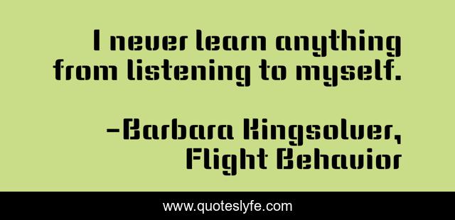 "Barbara Kingsolver, Flight Behavior Quotes." Quoteslyfe.com, 2025. Sat. 13 Dec. 2025. <https://www.quoteslyfe.com/quote/I-never-learn-anything-from-listening-to-116730>.