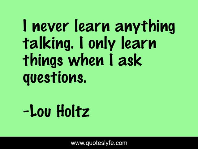 This page presents the quote "I never learn anything talking. I only learn things when I ask questions.". Author of this quote is Lou Holtz. .