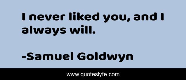 This page presents the quote "I never liked you, and I always will.". Author of this quote is Samuel Goldwyn. .