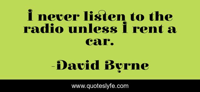 This page presents the quote "I never listen to the radio unless I rent a car.". Author of this quote is David Byrne. This quote is about radio, listen,.