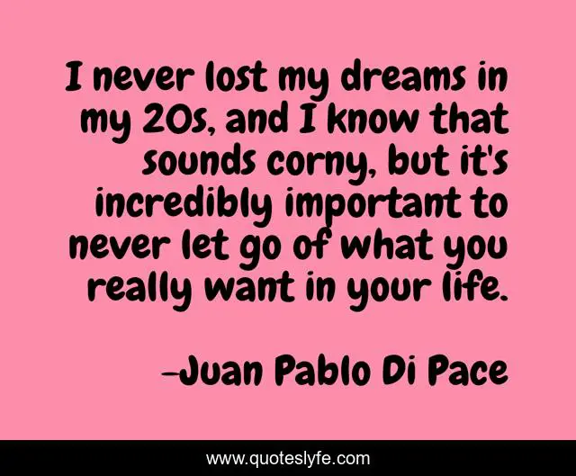 This page presents the quote "I never lost my dreams in my 20s, and I know that sounds corny, but it's incredibly important to never let go of what you really want in your life.". Author of this quote is Juan Pablo Di Pace. This quote is about life, lost,.