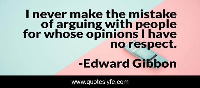 This page presents the quote "I never make the mistake of arguing with people for whose opinions I have no respect.". Author of this quote is Edward Gibbon. This quote is about opinions, mistake, people,.