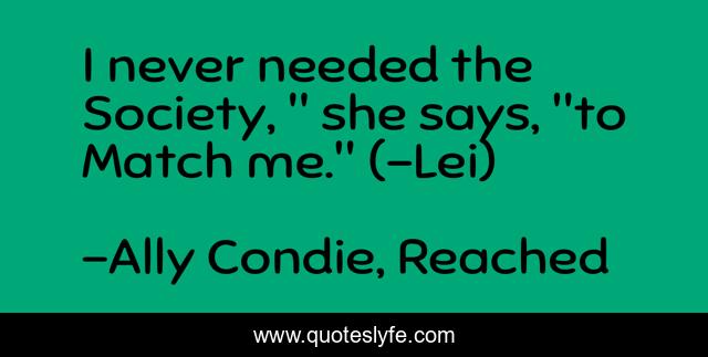 "Ally Condie, Reached Quotes." Quoteslyfe.com, 2025. Sat. 06 Dec. 2025. <https://www.quoteslyfe.com/quote/I-never-needed-the-Society-she-says-184838>.