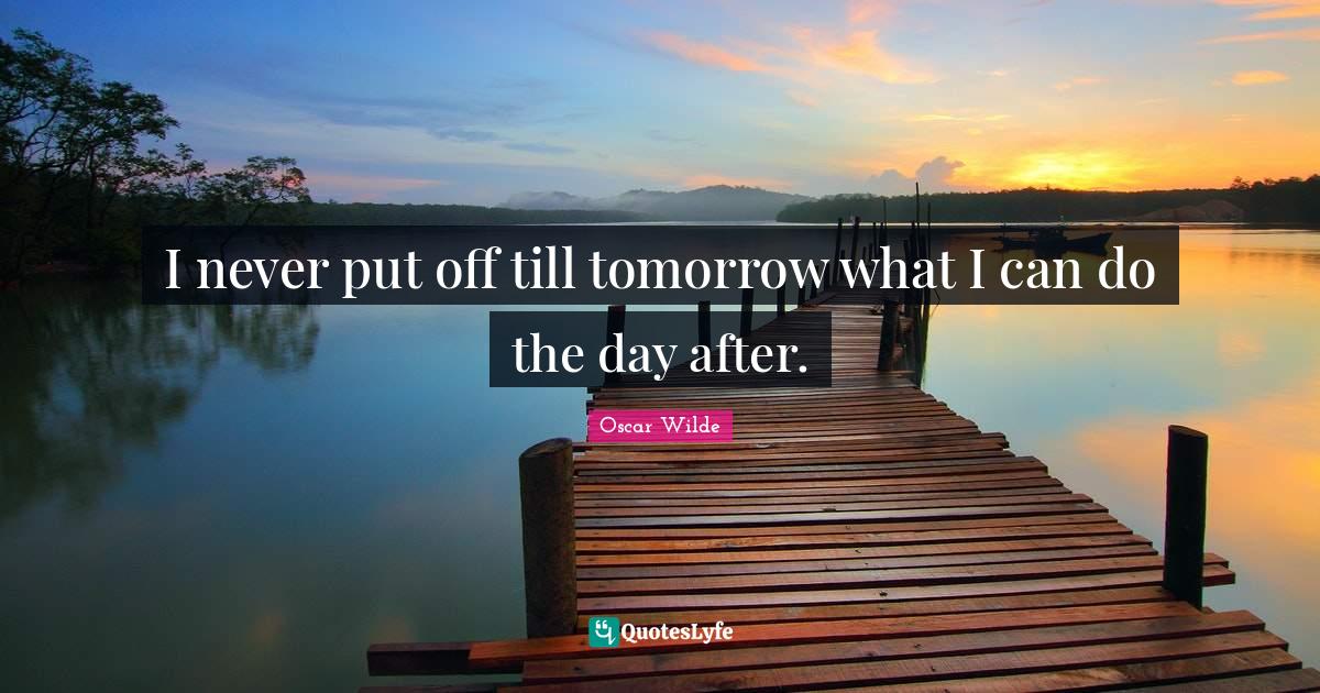 "Oscar Wilde Quotes." Quoteslyfe.com, 2026. Mon. 12 Jan. 2026. <https://www.quoteslyfe.com/quote/I-never-put-off-till-tomorrow-what-971821>.