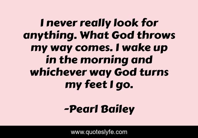 This page presents the quote "I never really look for anything. What God throws my way comes. I wake up in the morning and whichever way God turns my feet I go.". Author of this quote is Pearl Bailey. This quote is about faith, unity,.