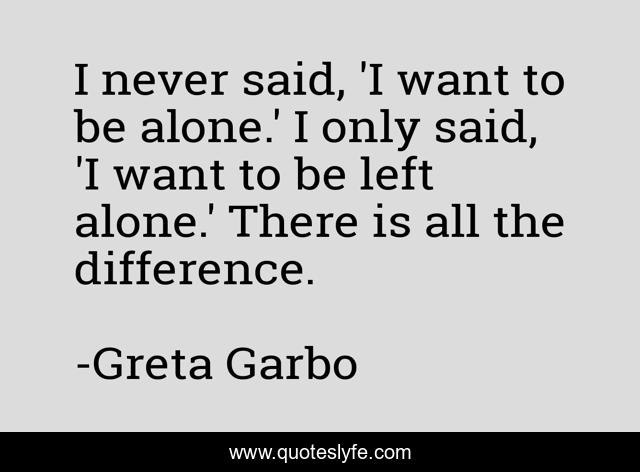 This page presents the quote "I never said, 'I want to be alone.' I only said, 'I want to be left alone.' There is all the difference.". Author of this quote is Greta Garbo. This quote is about difference, said,.