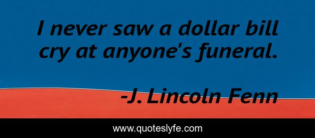 This page presents the quote "I never saw a dollar bill cry at anyone's funeral.". Author of this quote is J. Lincoln Fenn. This quote is about funerals, funeral, humor, horror,.