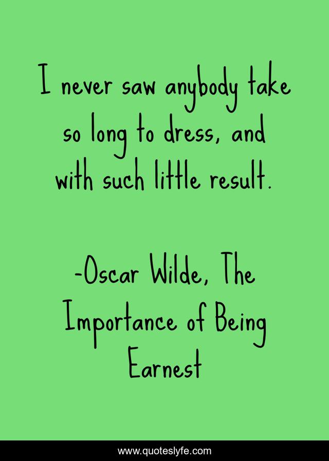 This page presents the quote "I never saw anybody take so long to dress, and with such little result.". Author of this quote is Oscar Wilde, The Importance of Being Earnest. This quote is about fashion, humor,.