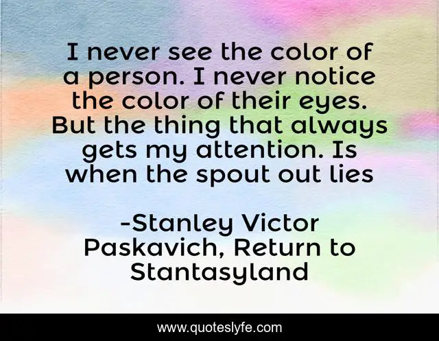 "Stanley Victor Paskavich, Return to Stantasyland Quotes." Quoteslyfe.com, 2025. Fri. 05 Dec. 2025. <https://www.quoteslyfe.com/quote/I-never-see-the-color-of-a-200510>.