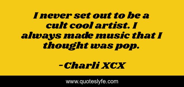 This page presents the quote "I never set out to be a cult cool artist. I always made music that I thought was pop.". Author of this quote is Charli XCX. This quote is about thought, music, artist,.