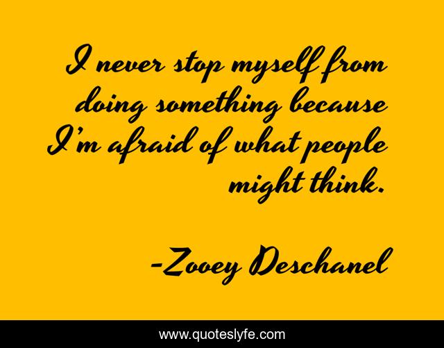 This page presents the quote "I never stop myself from doing something because I’m afraid of what people might think.". Author of this quote is Zooey Deschanel. This quote is about confidence, fear, others-opinion,.